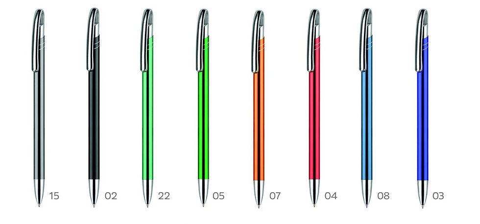 Puikiai žinome, kad reklaminis tušinukas yra lyderiaujanti verslo dovana, todėl stengiamės sudaryti itin plačias pasirinkimo galimybes. Tušinuko korpusas gali būti įvairiausių spalvų - mėlynas, raudonas ir pan. Sidabro, aukso, vario spalvos tušinukai gali būti su matinės arba blizgios spalvos apdaila. Pagal poreikį, vienspalvis metalinis rašiklis gali būti dekoruotas ir kitų spalvų detalėmis.